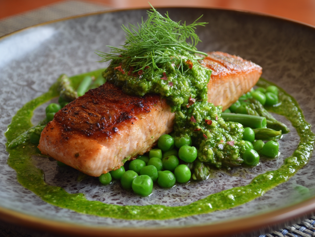 🐟 2. Seared Salmon with Spring Pea Pesto